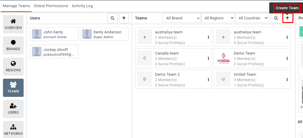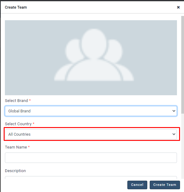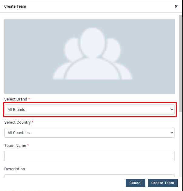 - Select the Brand under which you would like to create the social media team.