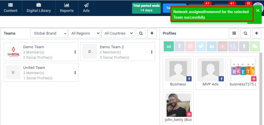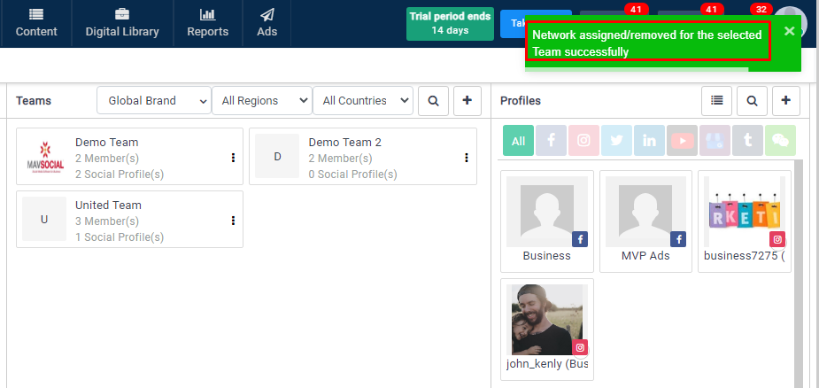 - The selected profile will be assigned to the Team after clicking on the update button.