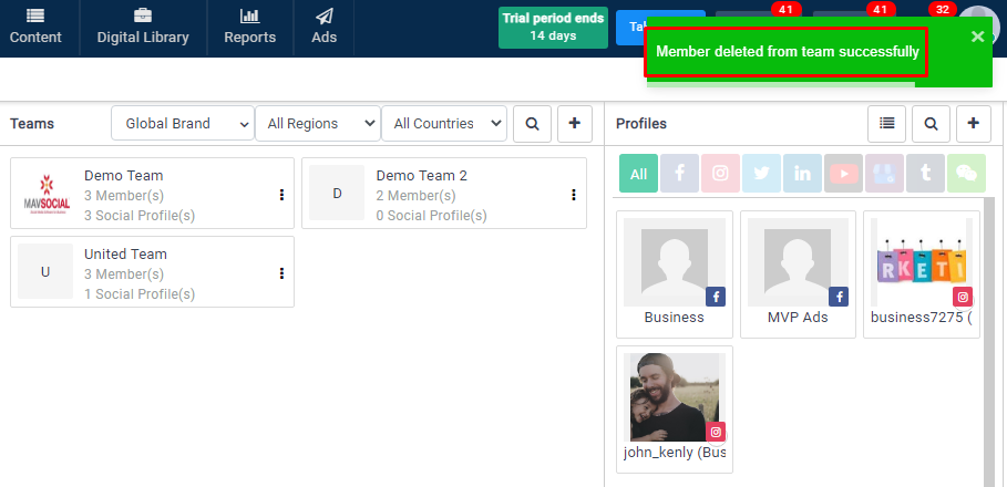 8. The profile will be removed from the team