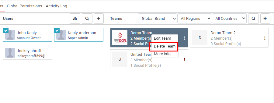- Click Delete Team from the menu.