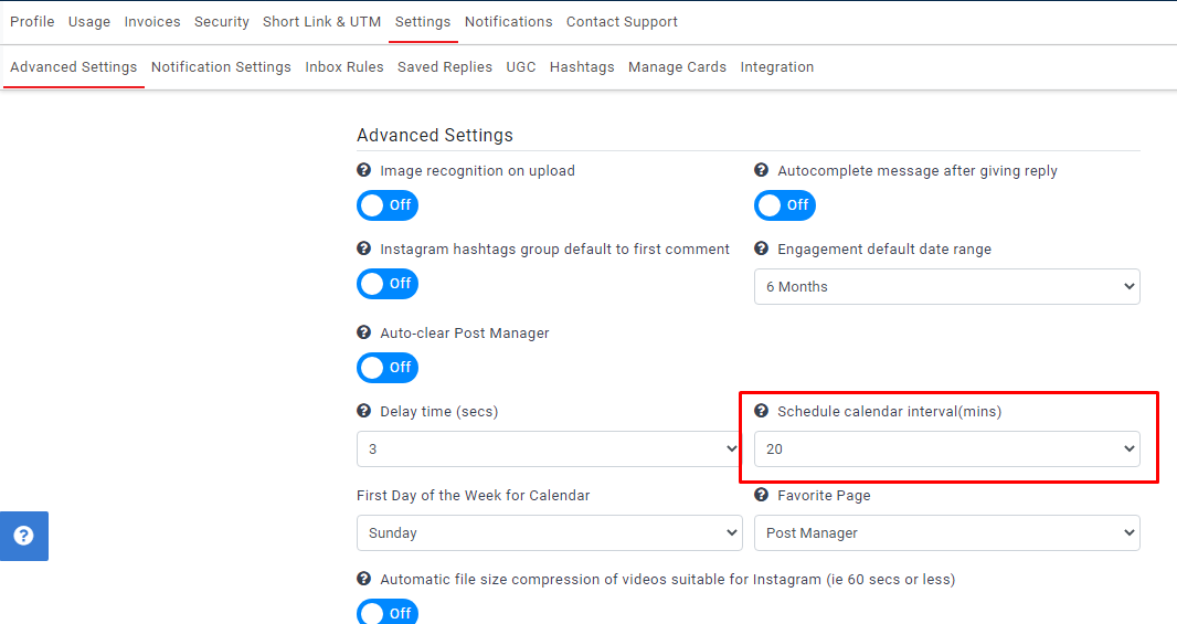 This feature allows you to select the default schedule post-interval.