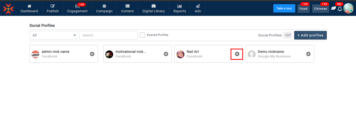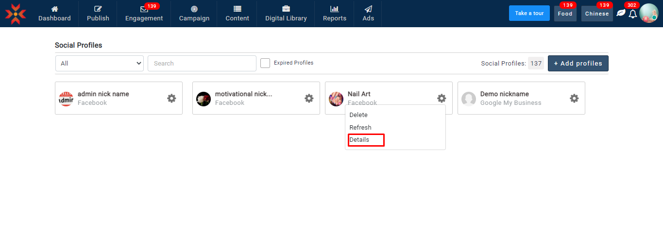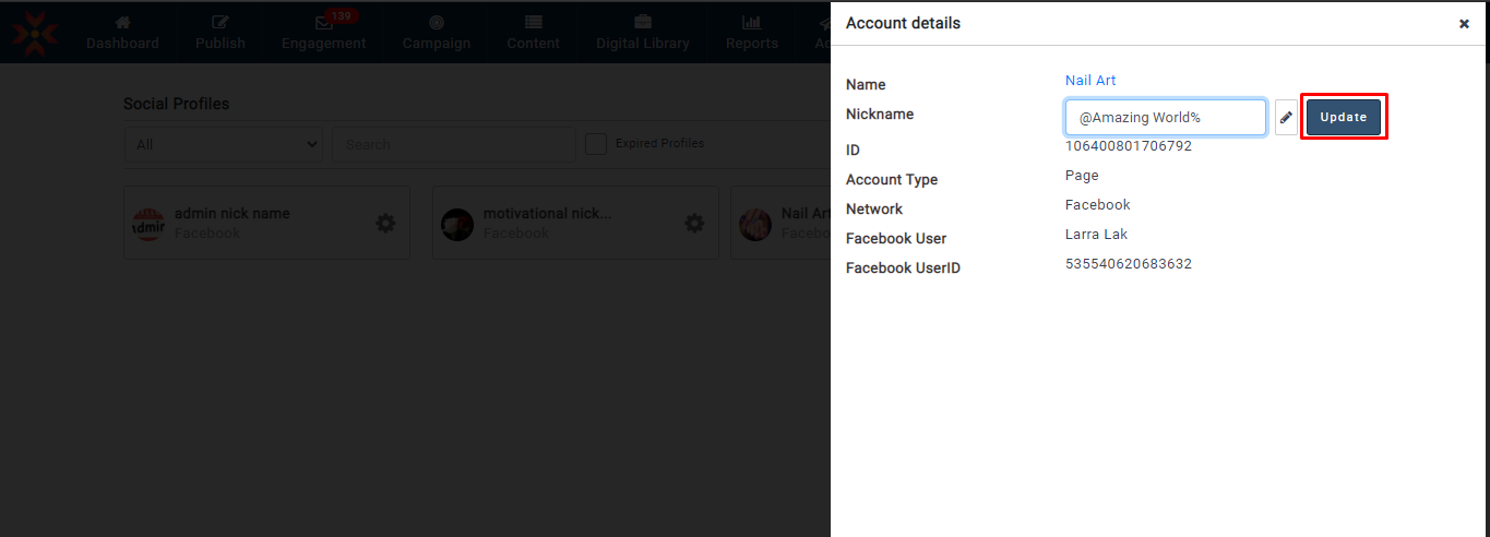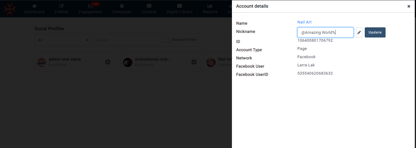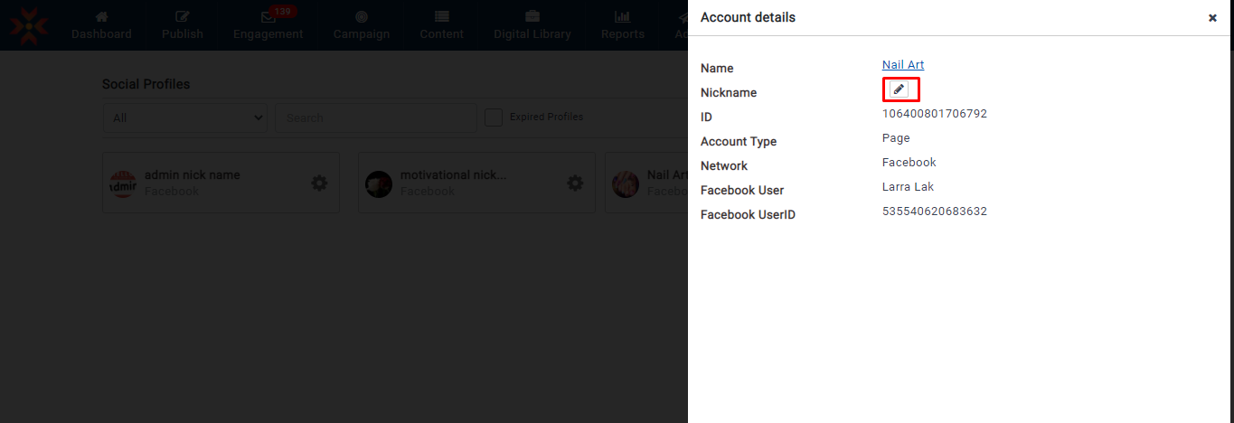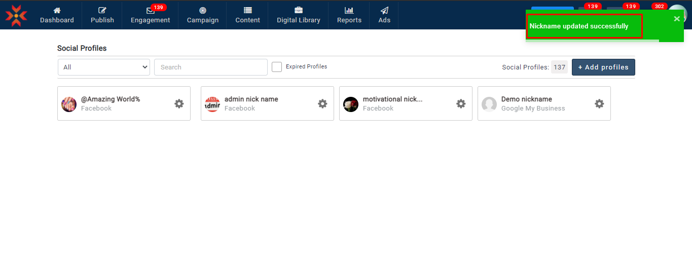 ユーザーは、Facebook、Instagram、および Google ビジネスプロフィールのプロフィールのニックネームを作成できます。