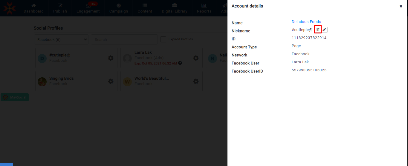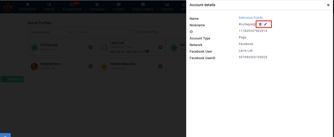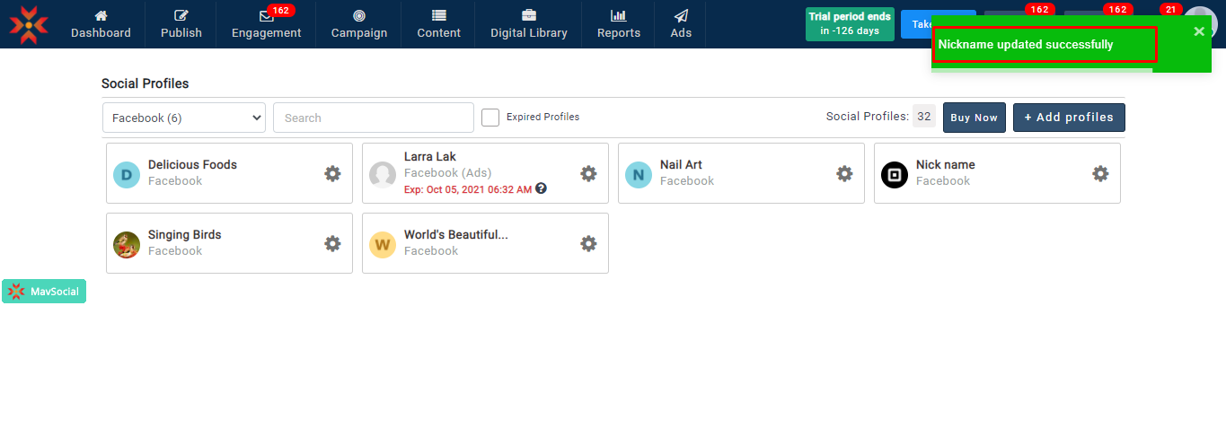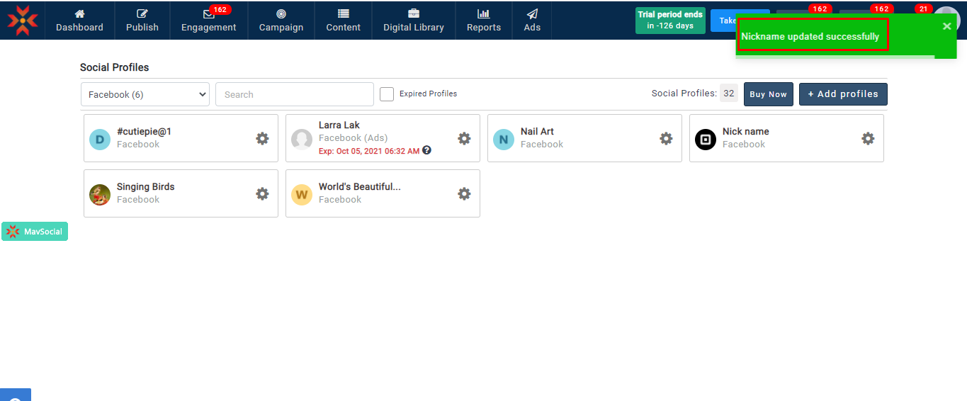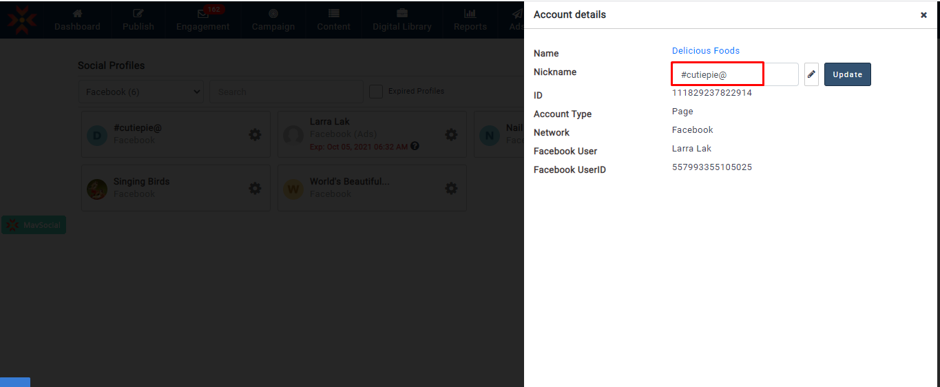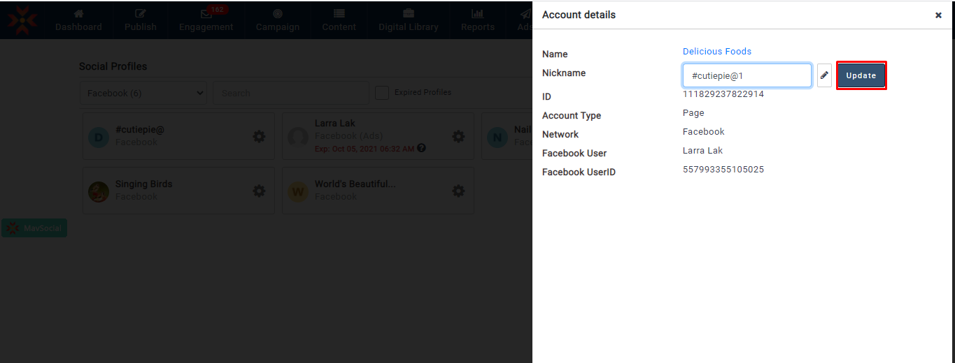 - 更新されたFacebookプロフィールのニックネームは、すべての MavSocial で確認できます。