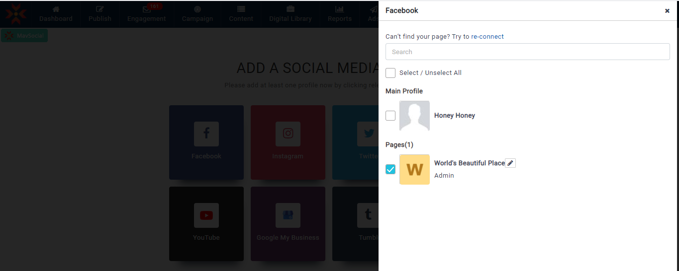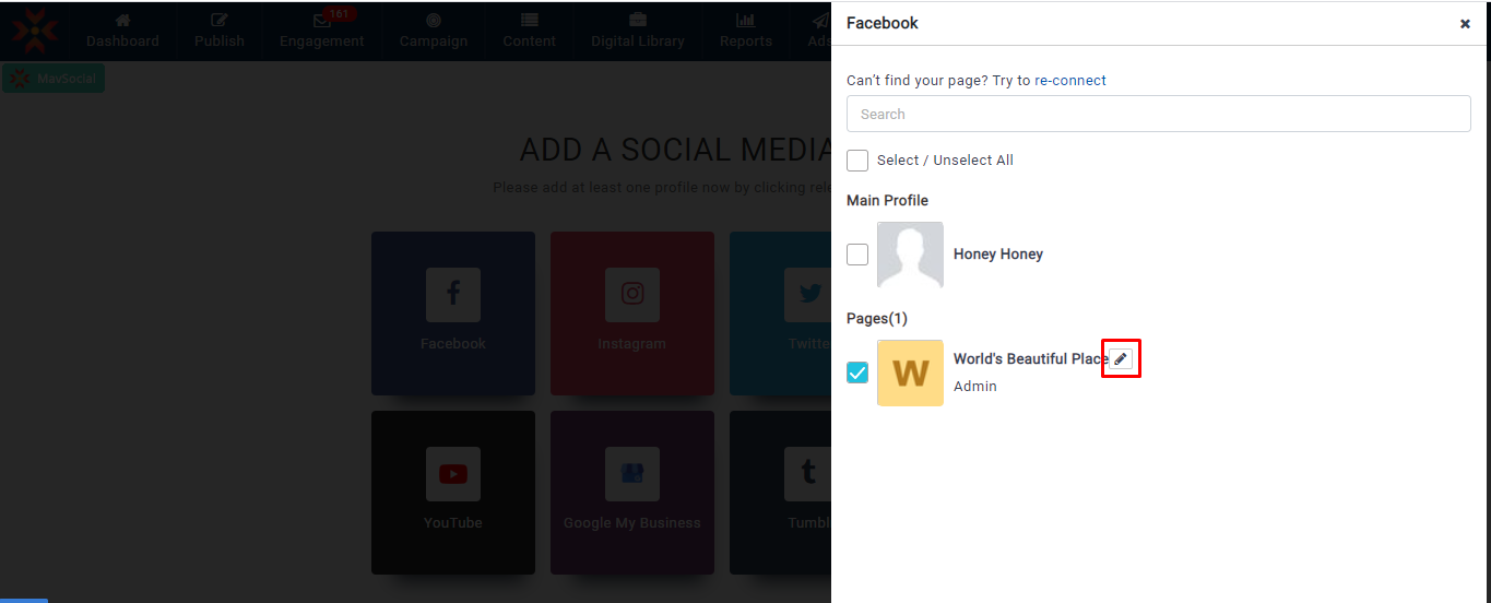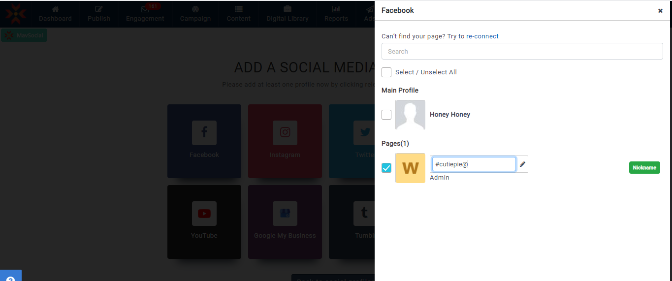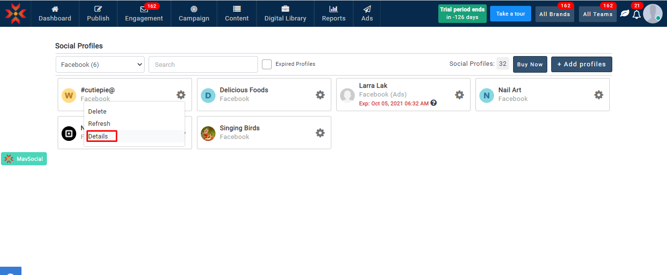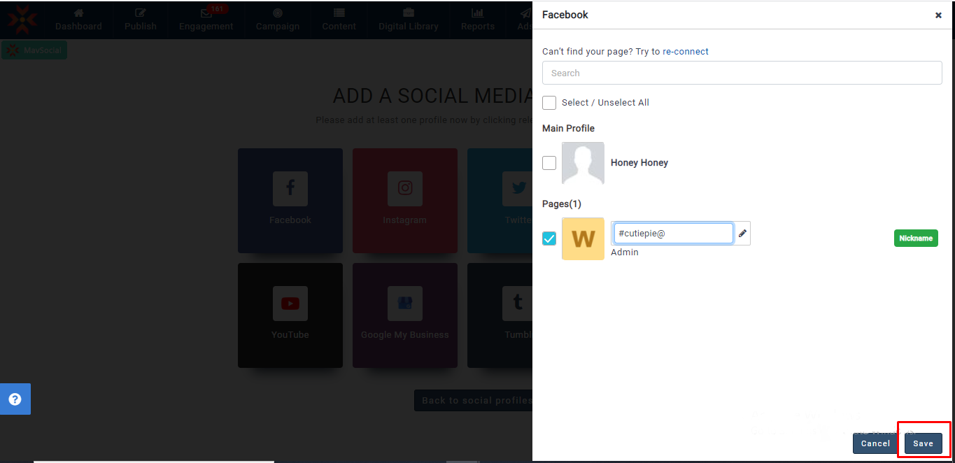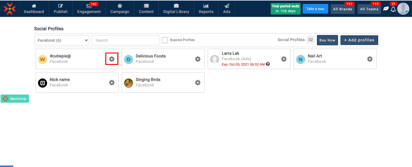 - 更新されたFacebookプロフィールのニックネームは、すべての MavSocial で確認できます。