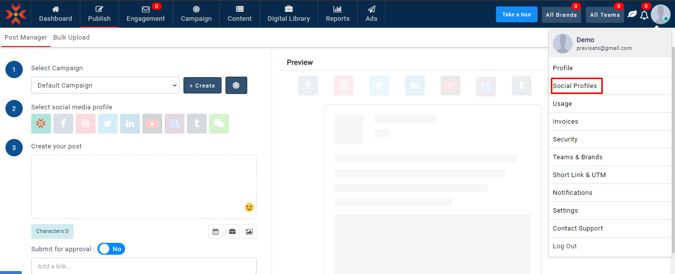 - アカウント → ソーシャルプロフィールに移動します