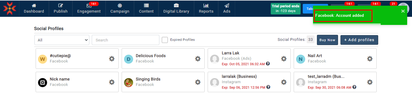 - アカウントが正常に追加されると、通知メッセージが表示されます。
